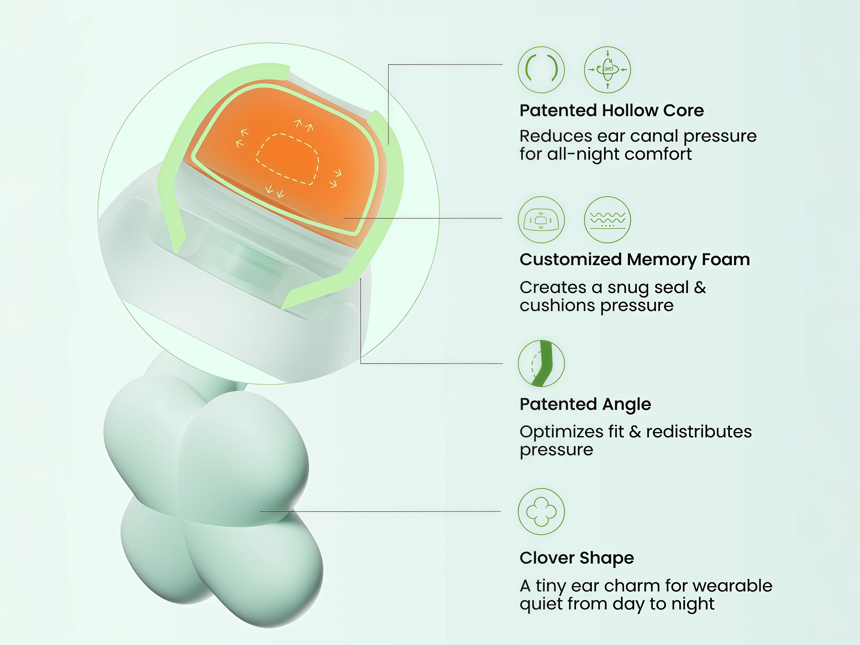 Engineered for Zero-Pressure Comfort Experience a revolution in auditory protection with our patented Qufits Eartips. Traditional earplugs rely on expansion pressure, often leading to soreness and fatigue. Our innovative hollow-core design changes the game. By utilizing a customized high-density memory foam suspended within a structural shell, we’ve created a "cushioning effect" that adapts instantly to the unique contours of your ear canal.