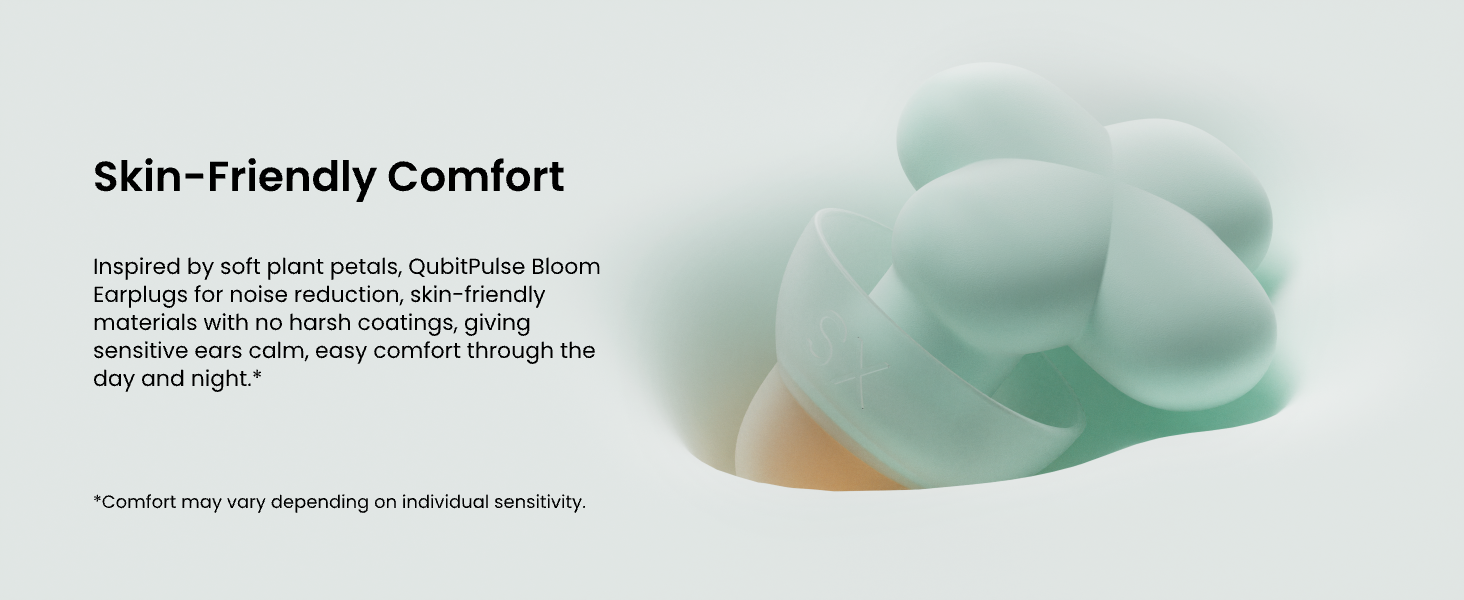 REUSABLE & EASY MANTAINACE: Made with high-quality, wear-resistant silicone and plush texture, QubitPulse Bloom earplugs withstand daily reuse—no frequent replacements (saves time & money). Daily care takes seconds: wipe ear tips with a wet cloth. Pro tip: Replace ear tips every 100 nights to prevent bacteria, keep them soft, and ensure consistent comfort & effectiveness.