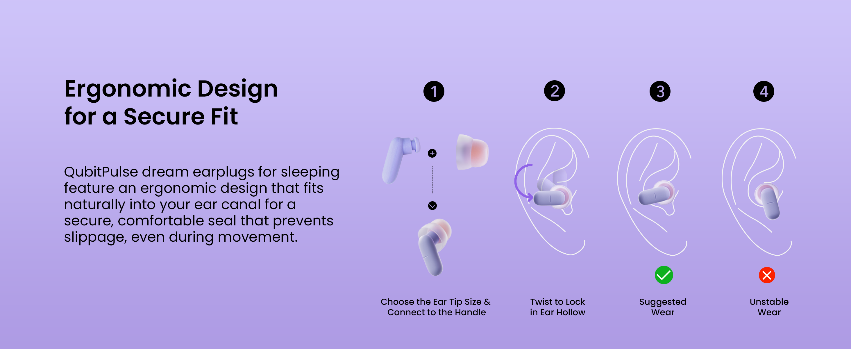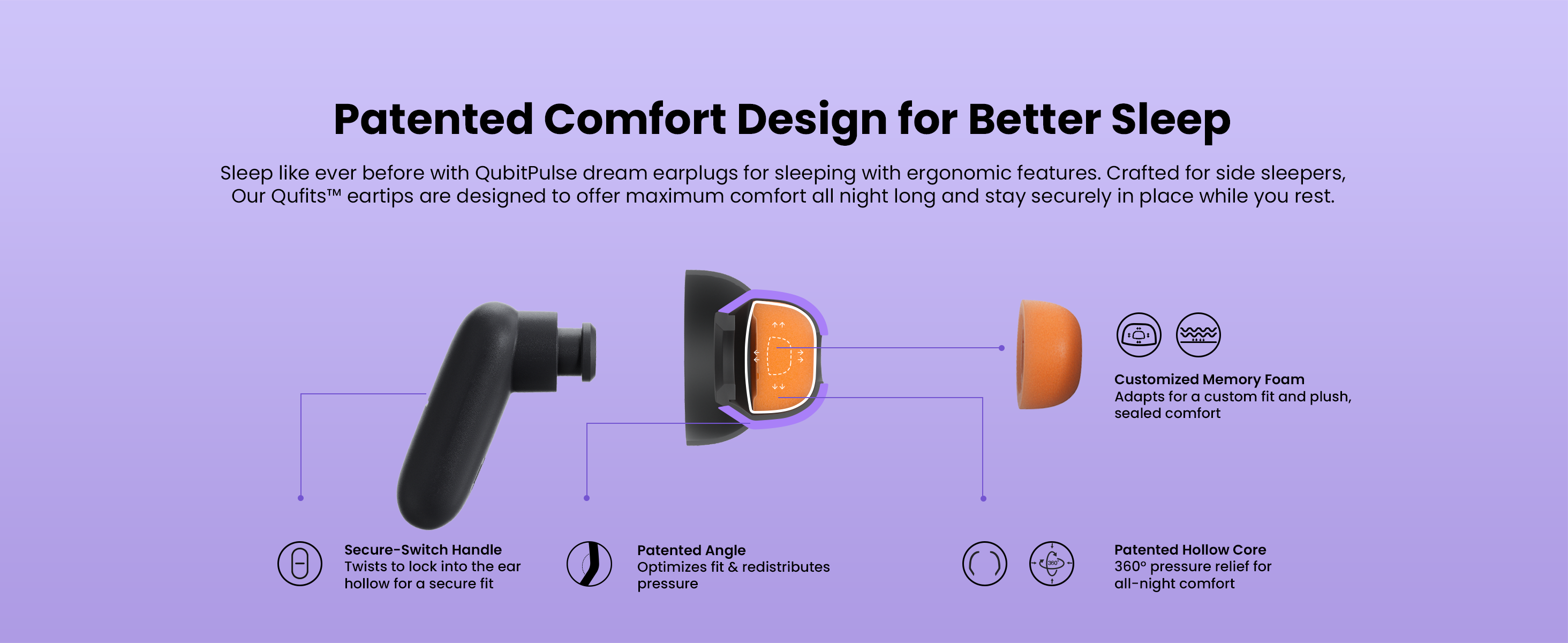 • Redefine Comfort for Sleep: Featuring a unique patented design, QubitPulse sleep earplugs conform to your ears' natural shape for a snug, secure fit that stays comfortable and in place all night, even when turning over.