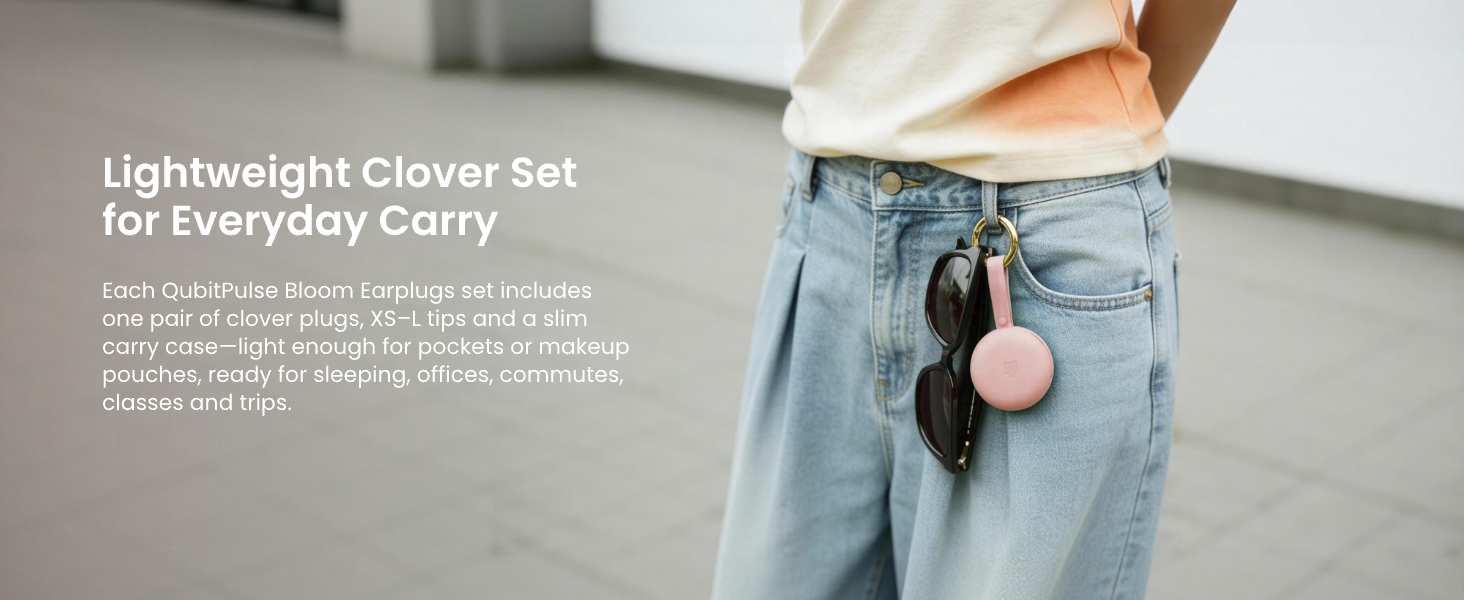 On-the-Go Earplugs: 23dB noise-reducing earplugs – QubitPulse Bloom crafts YOUR OWN QUIET SANCTUARY. Lightweight, sleek & skin-friendly for stylish all-day wear. They shield from daytime chaos for calm focus at work or study. Slow-rebound foam delivers unwavering comfort & a snug non-slip fit, keeping your peace of mind intact. Ideal for travel, study & building your personal quiet haven anytime, anywhere.